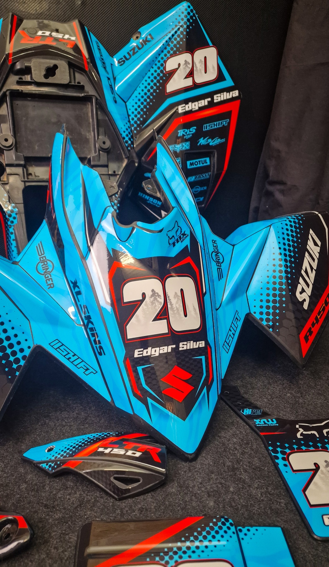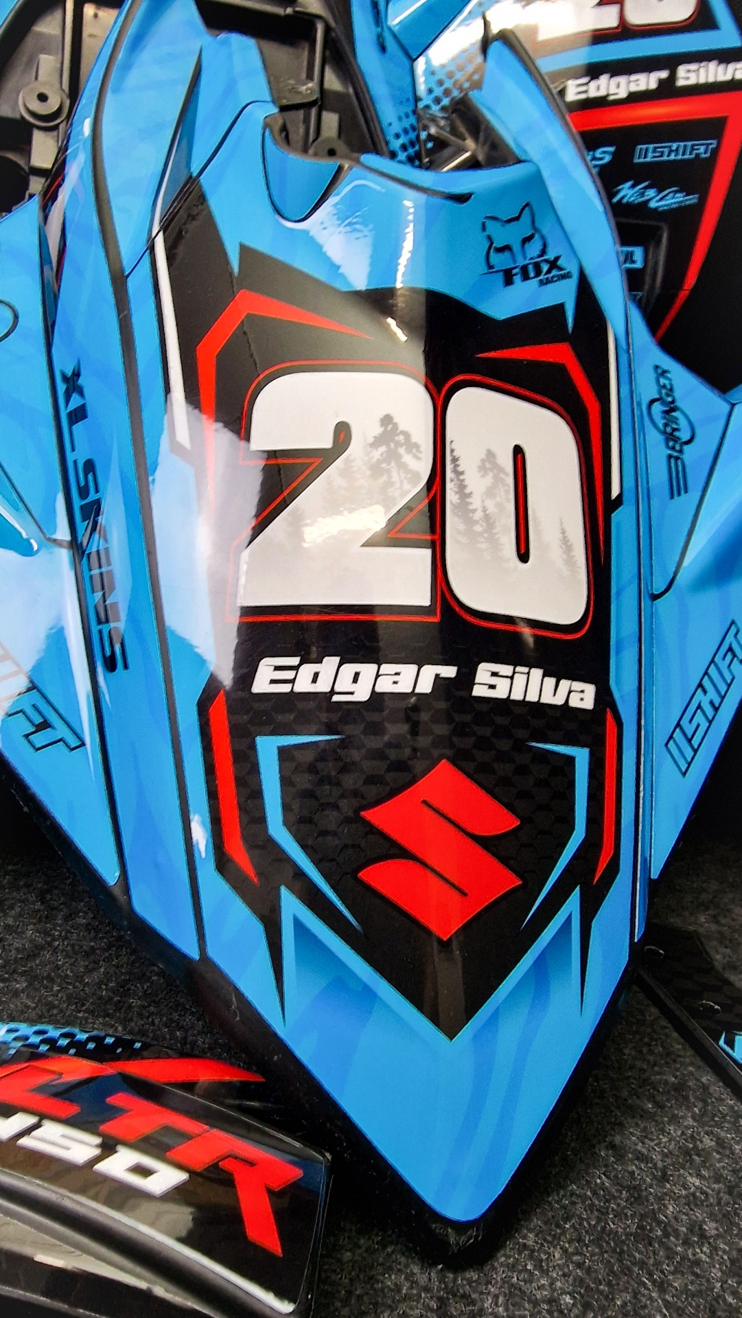 O Kit gráfico será personalizado de acordo com as instruções fornecidas nos campos apropriados, incluindo nome, número e logotipos/marcas.