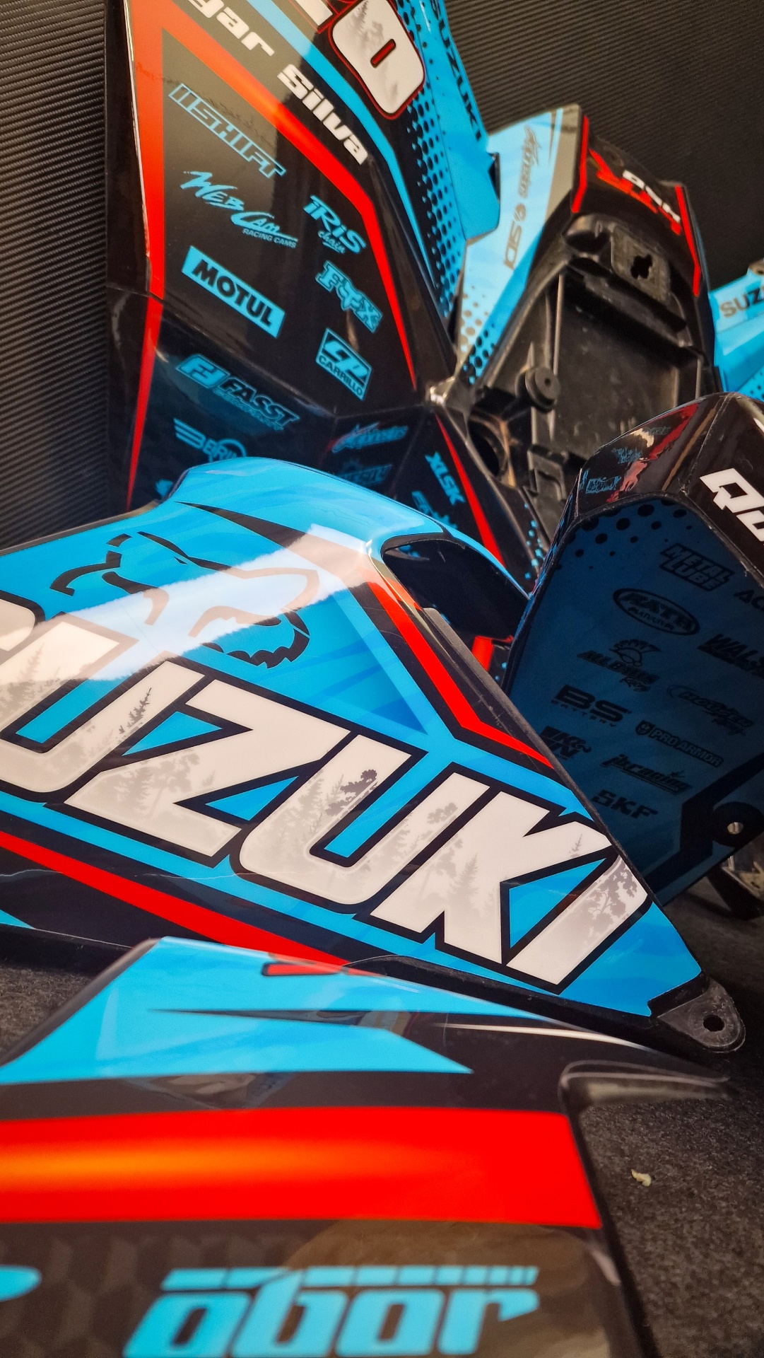 - Kit autocolantes para plasticos (parte superior) (Incluindo autocolantes para os guarda-lamas da frente)