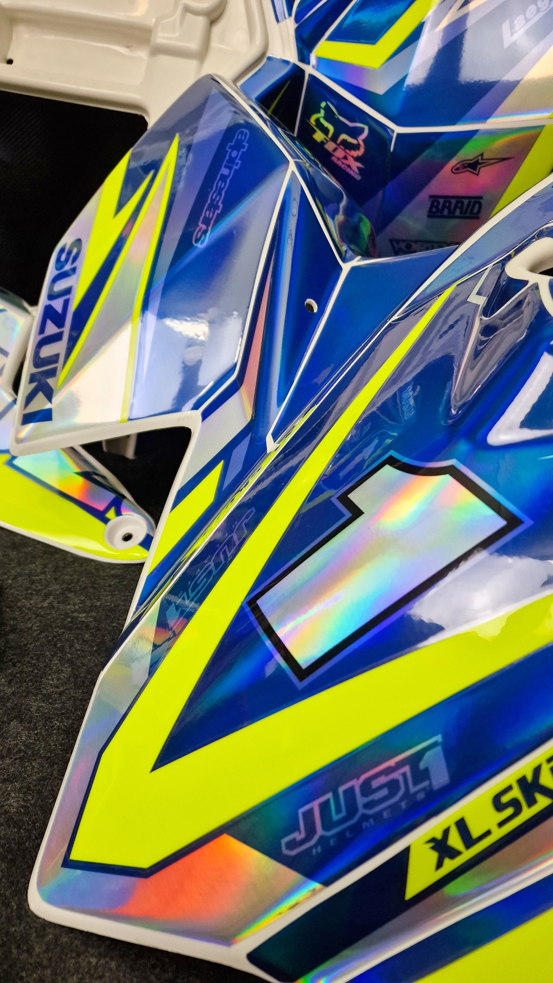 - Kit autocolantes para plasticos (parte superior) (Incluindo autocolantes para os guarda lamas da frente)