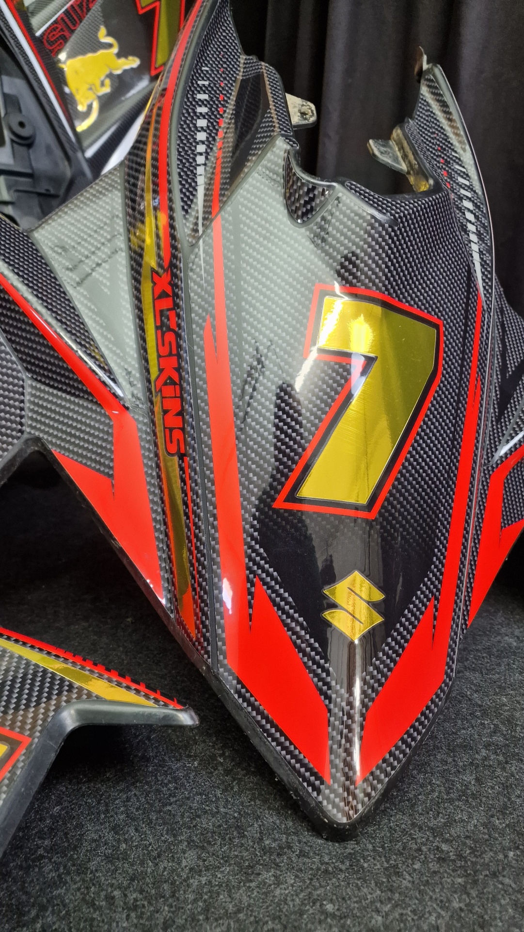 O Kit gráfico será personalizado de acordo com as instruções fornecidas nos campos apropriados, incluindo nome, número e logotipos/marcas.