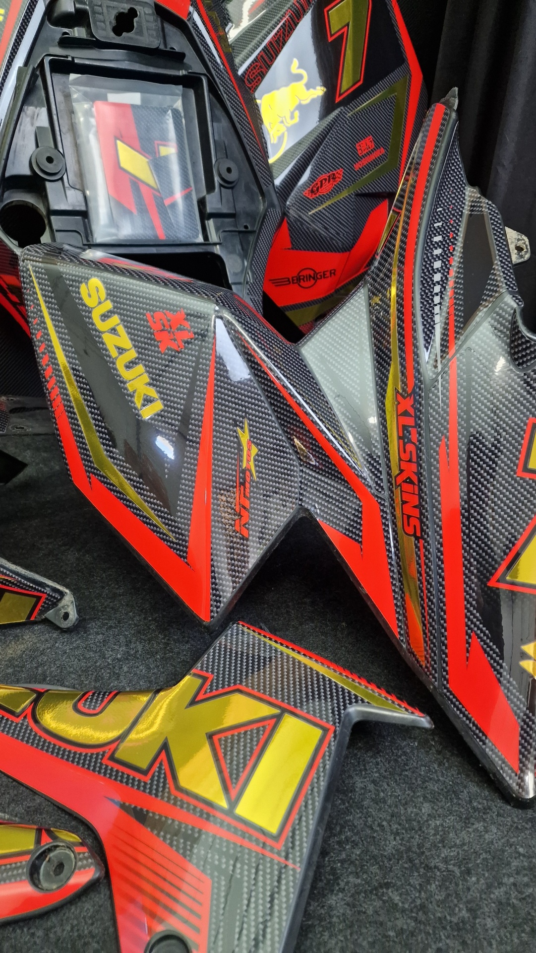 - Kit autocolantes para plasticos (parte superior) (Incluindo autocolantes para os guarda-lamas da frente)