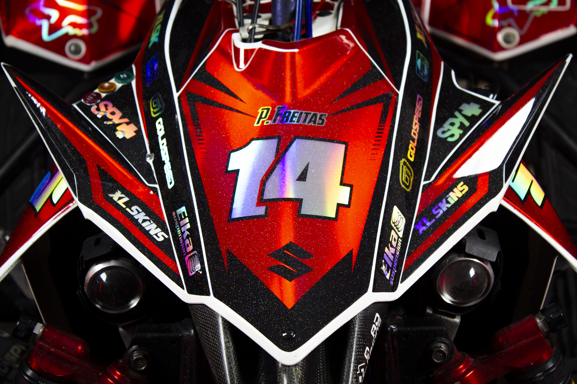 (nas fotos de exemplo o kit gráfico tem acabamento com flocos halográficos)