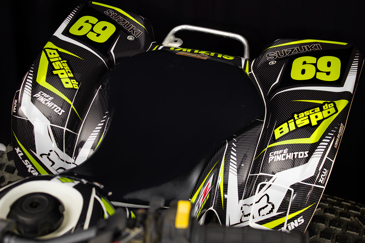 O Kit gráfico será personalizado de acordo com as instruções fornecidas nos campos apropriados, incluindo nome, número e logotipos/marcas.