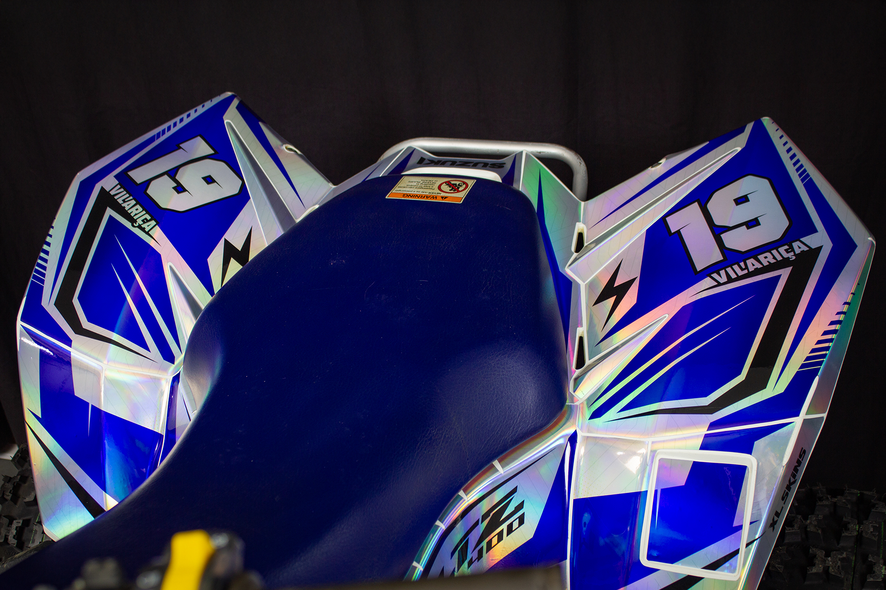 O Kit gráfico será personalizado de acordo com as instruções fornecidas nos campos apropriados, incluindo nome, número e logotipos/marcas.