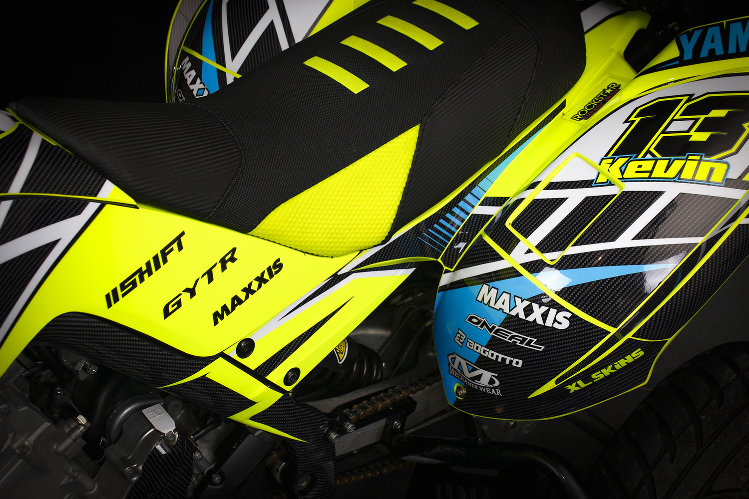 O Kit gráfico será personalizado de acordo com as instruções fornecidas nos campos apropriados, incluindo nome, número e logotipos/marcas.
